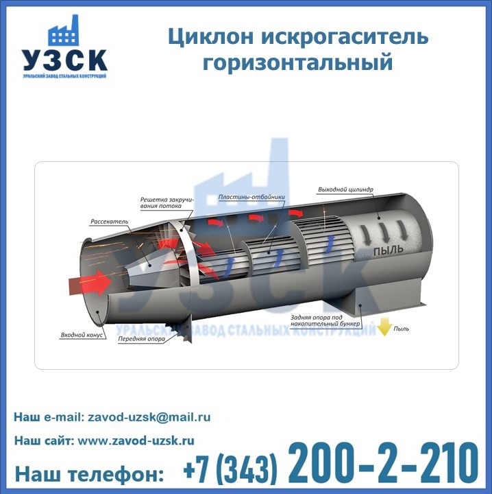 Горизонтальные циклоны-искрогасители ЦГ поставляются в Новочеркасске в сборке или же транспортными единицами для последующей сборки, если предназначены для работы с большими объемами.