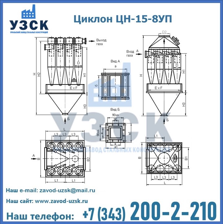 Завод «УЗСК» в Новочеркасске предлагает большой выбор циклонов ЦН-15-500×8УП и прочих устройств, полностью укомплектованных и готовых к эксплуатации. Мы гарантируем соответствие оборудования всем требованиям ГОСТ и ТУ, износостойкость и высокую производительность предлагаемого оборудования. Уральский Завод Стальных Конструкций изготавливает и продает надежное, эффективное и производительное оборудование, имеющее длительную гарантию и большой эксплуатационный ресурс. Если требуется изготовить циклон нестандартных размеров, то такой вариант выполнения заказа тоже предусмотрен, так как предприятие имеет собственные производственные площади и надежных поставщиков. На все поставляемое или производимое оборудование имеются чертежи и прочая техническая документация. Заказать и купить циклоны или прочее оборудование высокого качества и по доступной цене можно через наш сайт или по указанному в разделе «Контакты» телефону.