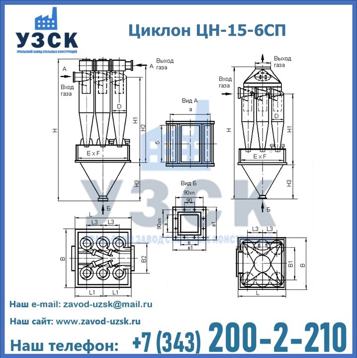 Завод «УЗСК» в Новочеркасске предлагает большой выбор циклонов ЦН-15-800×6СП и прочих устройств, полностью укомплектованных и готовых к эксплуатации. Мы гарантируем соответствие оборудования всем требованиям ГОСТ и ТУ, износостойкость и высокую производительность предлагаемого оборудования. Уральский Завод Стальных Конструкций изготавливает и продает надежное, эффективное и производительное оборудование, имеющее длительную гарантию и большой эксплуатационный ресурс. Если требуется изготовить циклон нестандартных размеров, то такой вариант выполнения заказа тоже предусмотрен, так как предприятие имеет собственные производственные площади и надежных поставщиков. На все поставляемое или производимое оборудование имеются чертежи и прочая техническая документация. Заказать и купить циклоны или прочее оборудование высокого качества и по доступной цене можно через наш сайт или по указанному в разделе «Контакты» телефону.