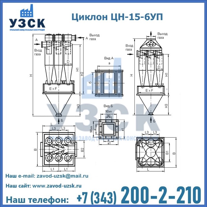 Завод «УЗСК» в Новочеркасске предлагает большой выбор циклонов ЦН-15-900×6УП и прочих устройств, полностью укомплектованных и готовых к эксплуатации. Мы гарантируем соответствие оборудования всем требованиям ГОСТ и ТУ, износостойкость и высокую производительность предлагаемого оборудования. Уральский Завод Стальных Конструкций изготавливает и продает надежное, эффективное и производительное оборудование, имеющее длительную гарантию и большой эксплуатационный ресурс. Если требуется изготовить циклон нестандартных размеров, то такой вариант выполнения заказа тоже предусмотрен, так как предприятие имеет собственные производственные площади и надежных поставщиков. На все поставляемое или производимое оборудование имеются чертежи и прочая техническая документация. Заказать и купить циклоны или прочее оборудование высокого качества и по доступной цене можно через наш сайт или по указанному в разделе «Контакты» телефону.