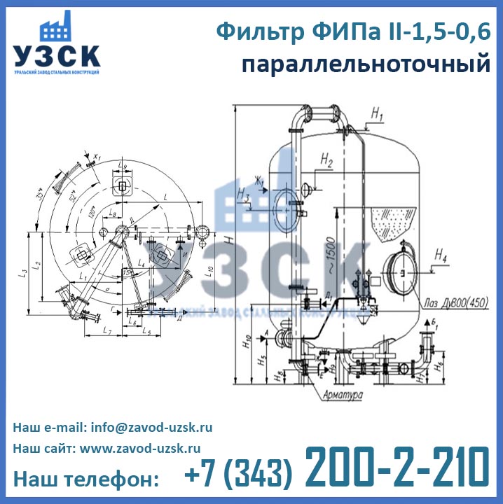 Цены фильтра ФИПа 2 ступени 1,5-0,6 формируются в соответствии со множеством факторов, таких как материальное исполнение, тип распределительных устройств, требуемая комплектация, необходимости доставки и т.д. Для расчета цены фильтров ФИПаII-1,5-0,6 в Новочеркасске обратитесь в отдел продаж Уральского Завода Стальных Конструкций по координатам, указанным в разделе «Контакты».