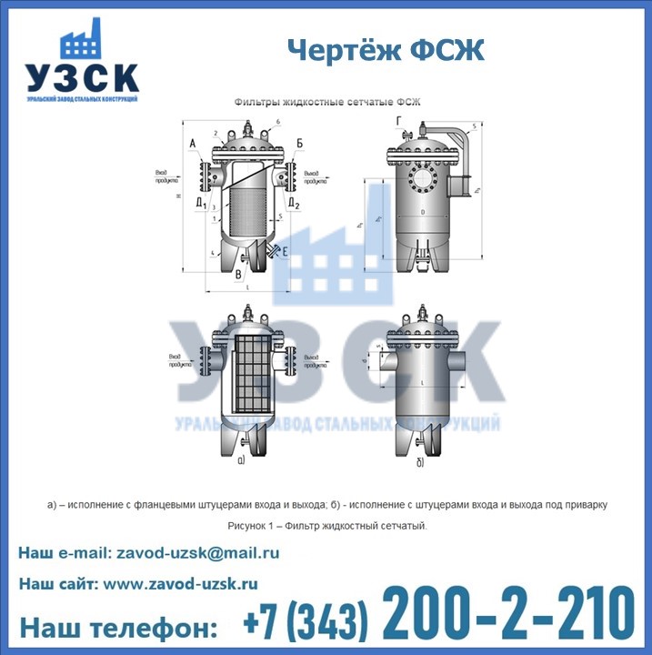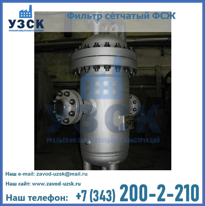 Очистку перекачиваемых жидкостей на предприятиях нефтяной, пищевой, горнорудной, фармацевтической и других отраслей промышленности эффективно выполнять с помощью жидкостного сетчатого фильтра — емкостное оборудование цилиндрической формы со съемной крышкой и элементом фильтрации внутри. Оснащенные им всасывающие линии насосных станций и установок защищены от проникновения твердых частиц в функциональные узлы гидравлической системы. Оборудование служит для перекачивания токсичных, агрессивных и иных эмульсий, суспензий, жидкостей. Купить фильтр сетчатый жидкостный ФСЖ в Новочеркасске с гарантией производителя предлагает «Уральский завод стальных конструкций». Мы выполняем проектирование и изготовление ФСЖ по индивидуальным требованиям (климатическая зона, транспортируемая жидкость).