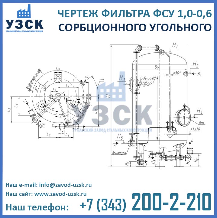 Наш завод (Уральский завод стальных конструкций) является производителем угольных фильтров, сам осуществляет изготовление и реализацию выпускаемой продукции. Приобретая фильтры ФСУ-1.0-0.6 в Новочеркасске от производителя, Вы приобретаете оборудование без наценок всевозможных посредников, а также значительно экономите свое время. Фильтры ФСУ1.0-0.6 завода УЗСК – это гарантия качества, кратчайшие сроки изготовления и цена, которая Вам понравится.