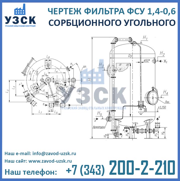 Если вы ищете фильтры ФСУ-1,4-0,6 в Новочеркасске от изготовителя, то Вы на правильном пути! Уральский завод стальных конструкций – непосредственный производитель сорбционных фильтров ФСУ, предлагающий самые выгодные цены на ФСУ-1.4-0.6 в Новочеркасске. По окончании процесса производства угольные фильтры проходят гидравлические испытания пробным давлением 0,9 МПа на аттестованном гидростенде, находящимся в собственности завода УЗСК. Мы гарантируем высокое качество выпускаемой продукции, и в этом уже убедились ведущие предприятия промышленного сектора России и стран ЕАЭС (см. раздел «Наши клиенты»).